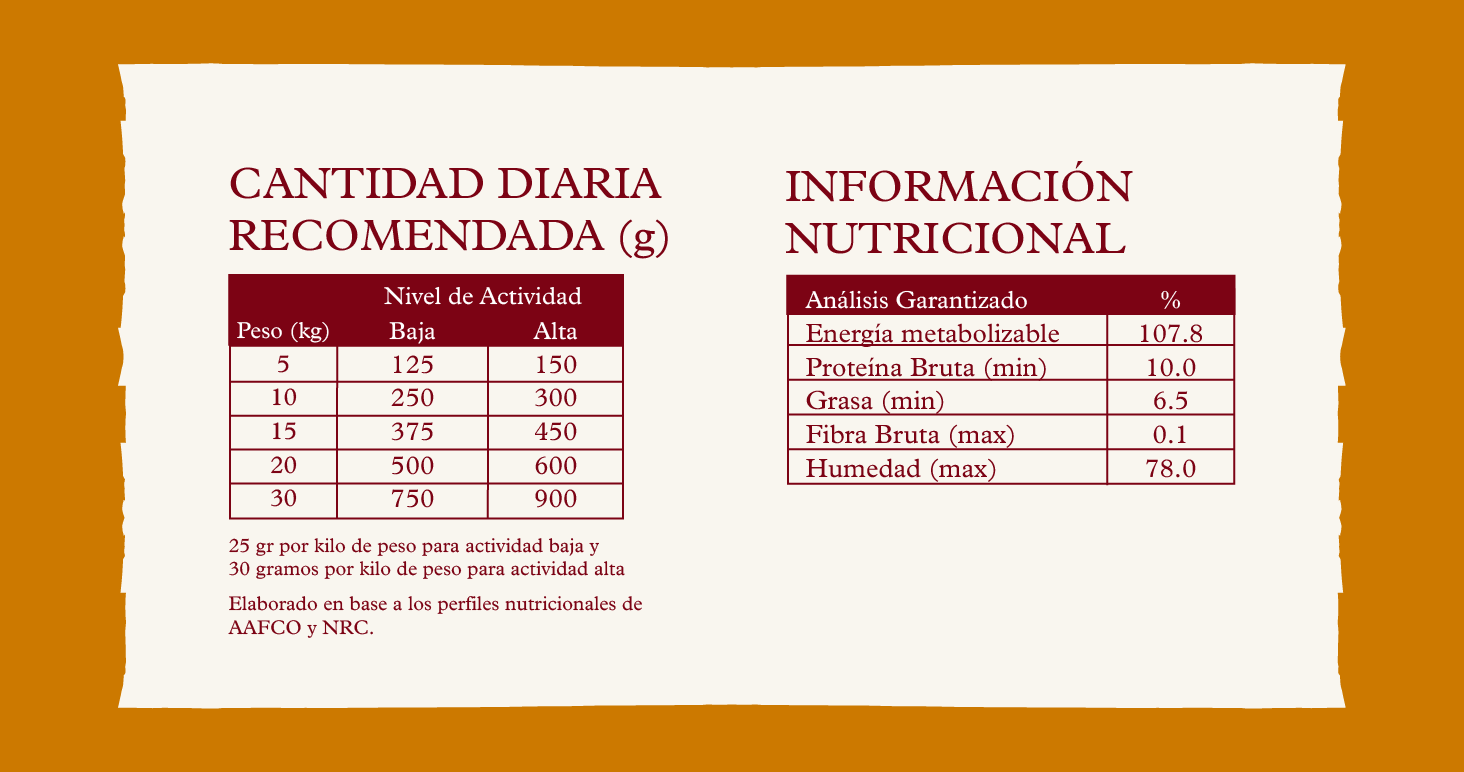 100% natural, sin granos, gluten ni preservantes artificiales